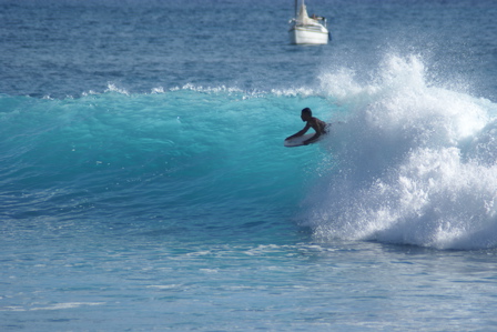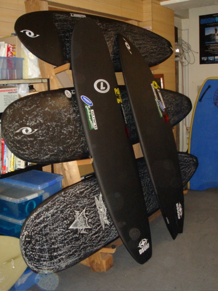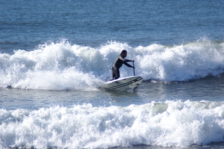 そんなわけで、今日はビデオの編集作業をしております。 もしかすると湘南の波が上がるかもしれないとのことなので、波が出たらですが、午後からは、久々にサーフする予定でいますが、午前中は雨交じりの天気でテンションもイマイチあがらないので、がっちり仕事しながら待機中です。 土曜日にアップしたdvd「フリースタイル」のトレーラーは見ていただけたでしょうか??? dvdお店に並んでいると思いますので気に入って頂けた方はぜひ買ってフルバージョンの綺麗な映像ごらんください。よろしくお願いいたします。 今日の本題 先日友人よりアドバイスを受けました。 それは、ブログの内容がスタンドアップパドルサーフィンに偏りすぎているのではとの指摘でした。 自分としては全国のサーファーに、もっとスタンドアップパドルサーフィンの事を知ってもらいたい一存で情報をアップしておりました。 しかし、残念ながら一般のサーファーにはスタンドアップパドルサーフィンが受け入れられるまでにはまだまだ時間がかかるようです。 スタンドアップパドルサーフィンは非常に難しいとの印象を持っている人も多いようですが、最近は道具も進化して誰でも簡単に楽しめるようになりました。まだやったことのない人はぜひ、最新の道具を借りて、一度体験してみてください。 カリフォルニアではジョエルもやっていますし、ハワイではボンガ、ケコアを始め、ほとんどの有名どころロングボーダー達が日常的にやってます。 スタンドアップパドルサーフィンはサーフィンのトレーニングにも最適だし、波が無くても楽しめるのです。今年一番のお勧めのサーフスタイルです。 そんな訳でスタンドアップパドルサーフィンの情報が多くなっていますが、 これからもスタンドアップパドルサーフィン情報、ロングボード情報、フィッシュ情報、その他のサーフィンの話題も、さらにパワーアップしてアップ行きたいとおもいますので、皆様よろしくおつきあいください。 写真はダイキリ色の波を滑るサーファー。 このボディーボーダーのポジションニングしている場所が、波の一番力のある部分。 サーフィン用の道具が大きくなればなるほど、パワーのあるスポットにポジショニングすることは難しくなります。この場所がキープできるようになればサーファーとして免許皆伝。 基本的にプロや達人を除き、ほとんどのサーファーは遙かショルダーよりを走っていることが多いのです。 さてわかるかな???? 久々にロングボードネタです。 全国のプロショップで好評発売中の「a movie free style」のトレーラーです。 本編にはインタビューやかえる型サーフボード、スタンドアップパドルサーフィンなど盛り沢山の内容となっております。よろしくお願いいたします。 リンデンの6’8ですが、非常に個性的なサーフボードです。 幅、厚みは小さめのロングボード並み。長さはわずか6’8。浮力はたっぷりあります。適正体重はロングボードと同じように60キロから80キロぐらいまで広いレンジで多くの人でも問題ないはずです。 テイクオフは幅がひろく、アウトラインもまっすぐなので非常に速いです。 日本で普段サーフィンするのに多い、膝から頭くらいのビーチブレイクならオールラウンドに使えます。長さが短いのでロングボーダーのセカンドボードや、ショートボーダーのセカンドボードにもなり得るデザインでないでしょうか? 乗った感想は、まずそのパドリングの早さに驚かされます。6フィート代のボードとしては驚異的な進みかた。もちろんテイクオフは楽々。 波が割れ始めるうねりのうちから立ち上がることが可能です。 テイクオフしたあとはゆったりと乗るのがお勧めですが、掘れたセクションではテールに乗って深いターンをすることも自由自在。長さがロングボードと比べるとはるかに短いのでターン性能も良好です。 フィンのセットアップは付属のフューチャーのサイドフィンに、センターボックスには5−7インチのロングボード用のフィンをいろいろと試してみると良いと思います。 お勧めは6.5インチぐらいのワイドベースでティップが細い普通のフィン。 軽く動かしたいならカッタウェイも試してはいかがでしょうか? 昨日の湘南、風が一日のうちでいろいろと変化しましたが、サイズはばっちり残り楽しくサーフできました。 強めの北西風の影響でちょっとハードコアな雰囲気でしたが、7’6のjjタンカーチェイサーを使い、セット波ねらいでサーフしてきました。 タンカーチェイサーは個人的には4フィートぐらいの掘れた波にベストフィットです。でも子供や小柄な女の子ならロングボード替わりにも使えます。 珍しく掘れた波が多かった昨日の模様。ライダーはローカルの荻野さん。 (名前正解かな?間違っていたら訂正しますのでご指摘ください) その後ミーティングをこなして、もう一度スタンドアップパドルサーフィンでラインナップにもどりましたが、風もオンショアで波も下が