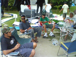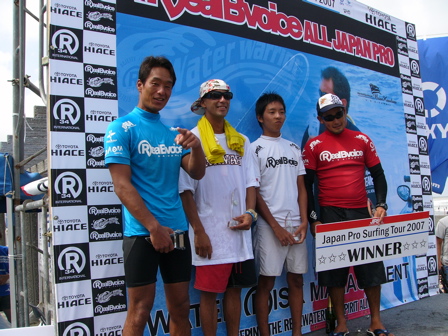 特にボンガ・パーキンス氏から、世界のサーフィンの流れについていろいろと聞くことができた事が最大の収穫でした。 ロングボードサーキットは9フィート以上のレギュレーションのボードで誰が一番上手くサーフ出来るのかを競うコンテストであること、新しく作られているスタンドアップパドルサーフィンのレギュレーションでは10フィート以上のボードで誰が一番上手くパドルを使ってサーフ出来るかを競うことなど、コンテストサーフィンは円熟してくることで、レギュレーションが出来上がり、いかにそれに対して対応できるかが、コンテストで成功するための鍵となるようです。 今回のコンテストを見て一番重要だと思ったことは、サーフボードデザインの重要性です。 トップのサーファーは自分の使うボードに関して一貫性があり、考えが、ぶれません。 昨今、a.s.p.のショートボーダーはどんなコンディションでも、ほぼ同じようなデザインのボードを使用している事でもわかるように、デザインに関して一貫性を持たないと乗り手である、ライダーが波の変化に対して対応できないようです。 コンテストに勝ちたいと思っているコンペティターの皆さんは、来期に向けて、シーズンオフには、ボンガやケコアと同じボードを試してみるとよいのでは無いでしょうか。 アビソからもクリスチャン・ワック、ジョシュ・モアー、c.d.・ネルソンもでる等がリリースされていますのでプロモデルの興味のあるかたは是非お試しください。 そして、現在はコンテストレポートを執筆中。 コンテストの方は、過去まれに見る大接戦の末に、ケコアが優勝。 これでケコアは今期、日本でjpsa、aspを合わせるとなんと4勝目。 詳しいレポートはサーフメディアの方に今日の夜までにアップ出来る予定です。 どうぞお楽しみに。 決勝を前にリラックスした表情のケコアとボンガ。 ![]() さて月曜日よりブログもあげることが出来ないほどの忙しい日々を送っております。 ここ数日、ウェッブ用のコンテストレポートを書き、都内にて重要案件のミーティングをこなし、湘南にサーフボードを届け、コラム原稿を書き、雑誌のコンテストレポート、そして今日はまたもや湘南にてfm横浜のプレゼントビデオ撮影をこなしてきました。 まだ、雑誌の文字流し込みとコラムは作業中。 週末は福島でのa.s.p.コンテスト、来週はインタースタイル、ミッチ・アブシャー来日、静波でフィッシュフライ、そして地元のお祭りと重なって石塚晃の結婚パーティーと行事が盛り沢山。多分今週末の福島はパスします。皆さんごめんなさい。 こんな感じで、全く新作ビデオの編集作業進みません。 どうなる俺?????