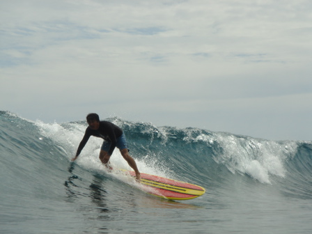 それまでは、事務所にて静かに新作dvdの製作をしながら、台風のうねり待ち。 今年はスタンドアップパドルボード、アビソのロングボード、蛙ボード、フィッシュボードと道具のほうの準備ばんたん。 dvdのほうも撮影のほうはほぼ終了。 これから細かい編集作業をファイナルカットで行って、音とサブタイトルを入れれば完成です。 すでにスムースンカジュアルの撮り下ろし作品は、前作発表から1年がすぎています。 素材のほうはたっぷり撮ったので、あとはどのようにまとめるかです。 オッタマゲール、スタンドアップパドル、a.s.pの練習風景やjpsaプロの撮り下ろしなど、内容は盛りだくさんです。 発売は9月予定。どうぞお楽しみに。 今日の写真はシメルー島でのサトニーのサーフィンの模様です。 毎年夏にはインドネシアの奥地を探検する本物のサーファーです。 先週よりアップしている写真を撮ってくれたカメラマンでもあります。
